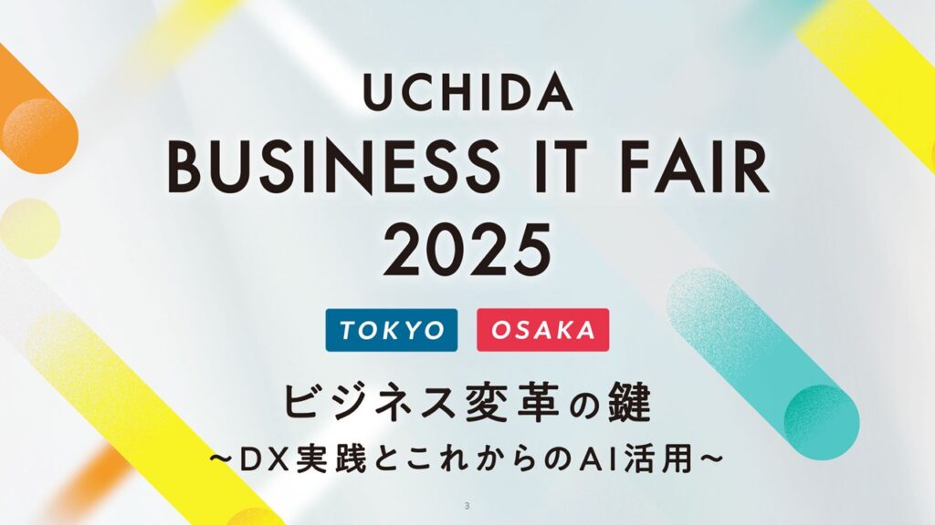 本セミナーは、株式会社内田洋行が主催する「UCHIDA ビジネスITフェア2025」内で開催されました。同フェアは、東京会場(2025年10月24日(金) 明治記念館)と大阪会場(2025年10月30日(木) グランフロント大阪)で開催され、様々な業種や分野で業務変革に取り組む企業の最新事例、DXの実現方法、最新ソリューションを紹介し、リアルな体験を提供する場となりました。